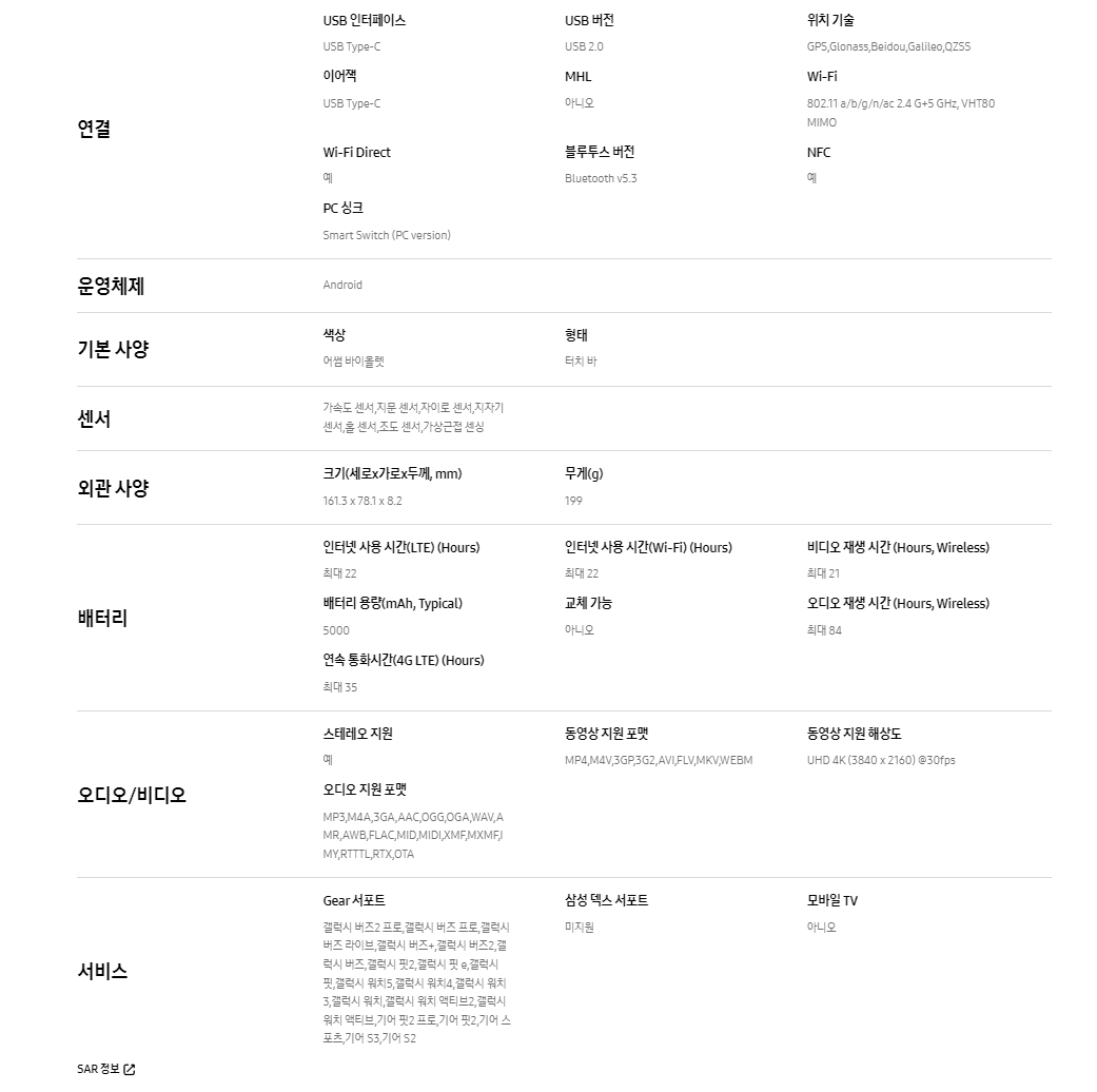 ▷ 배터리: 5천mAh