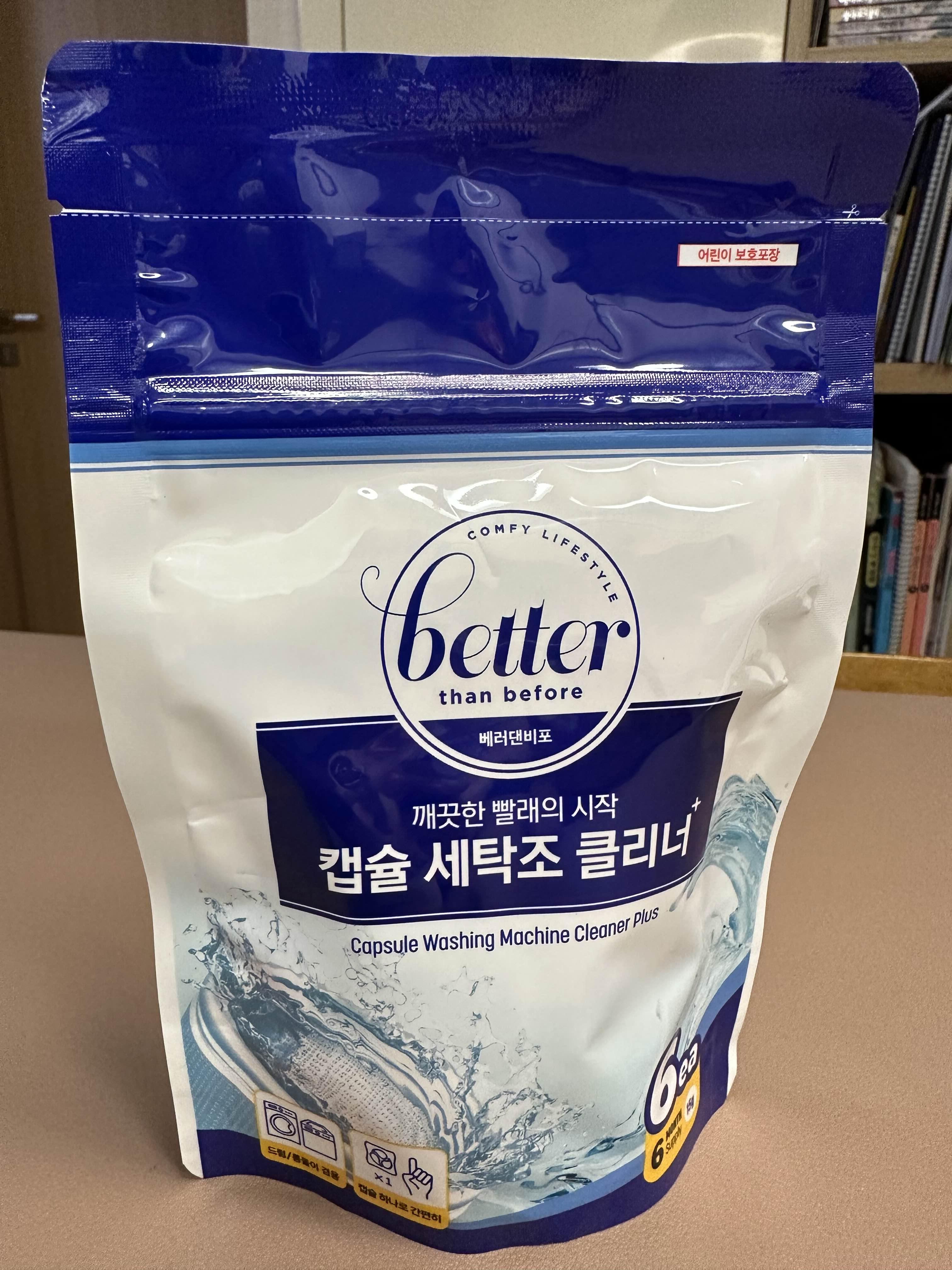 이 제품입니다. 늘 액상이나 가루 제품만 봤는데 요즘 캡슐클리너가 나와서 써보기로 했어요.