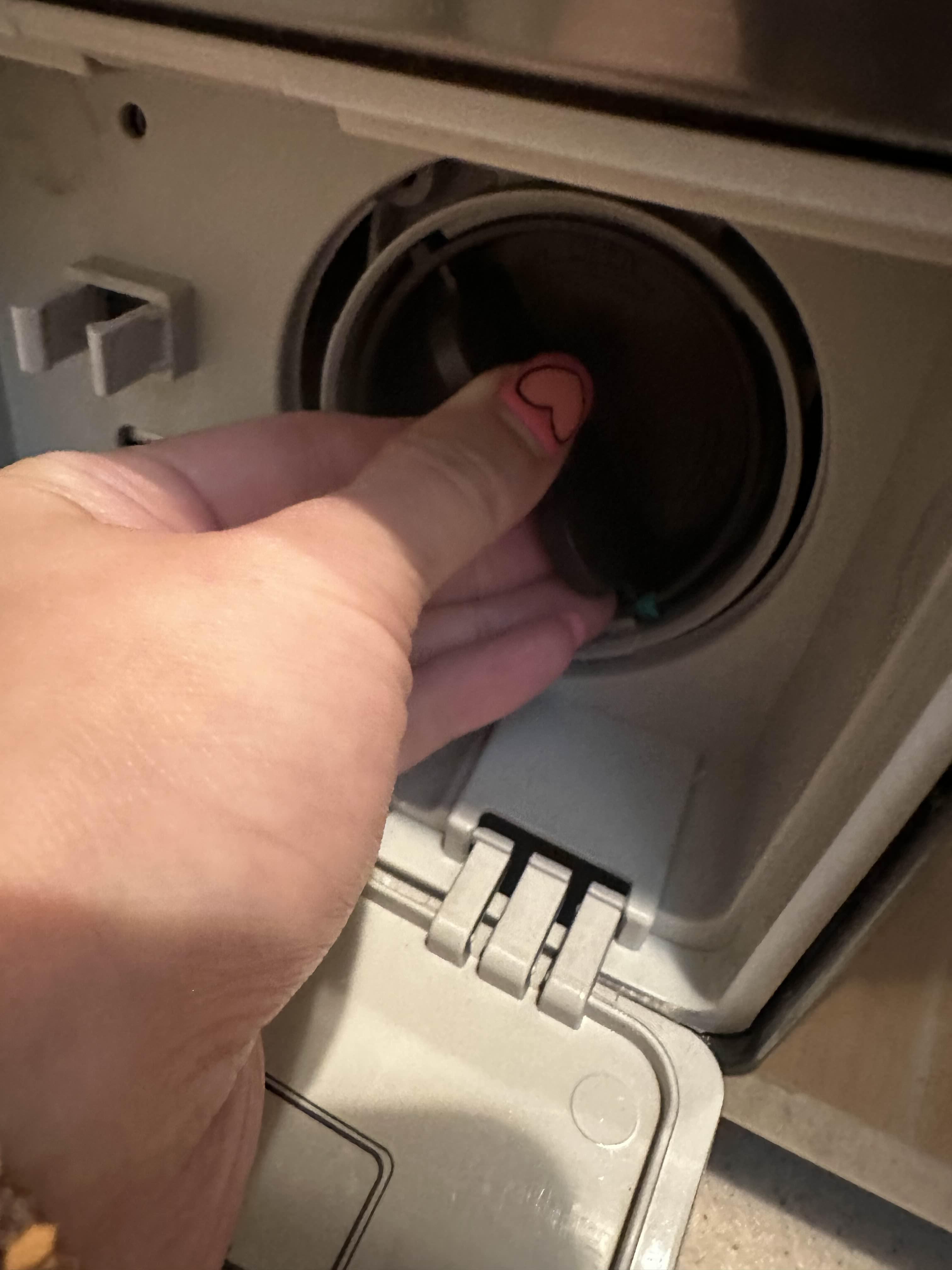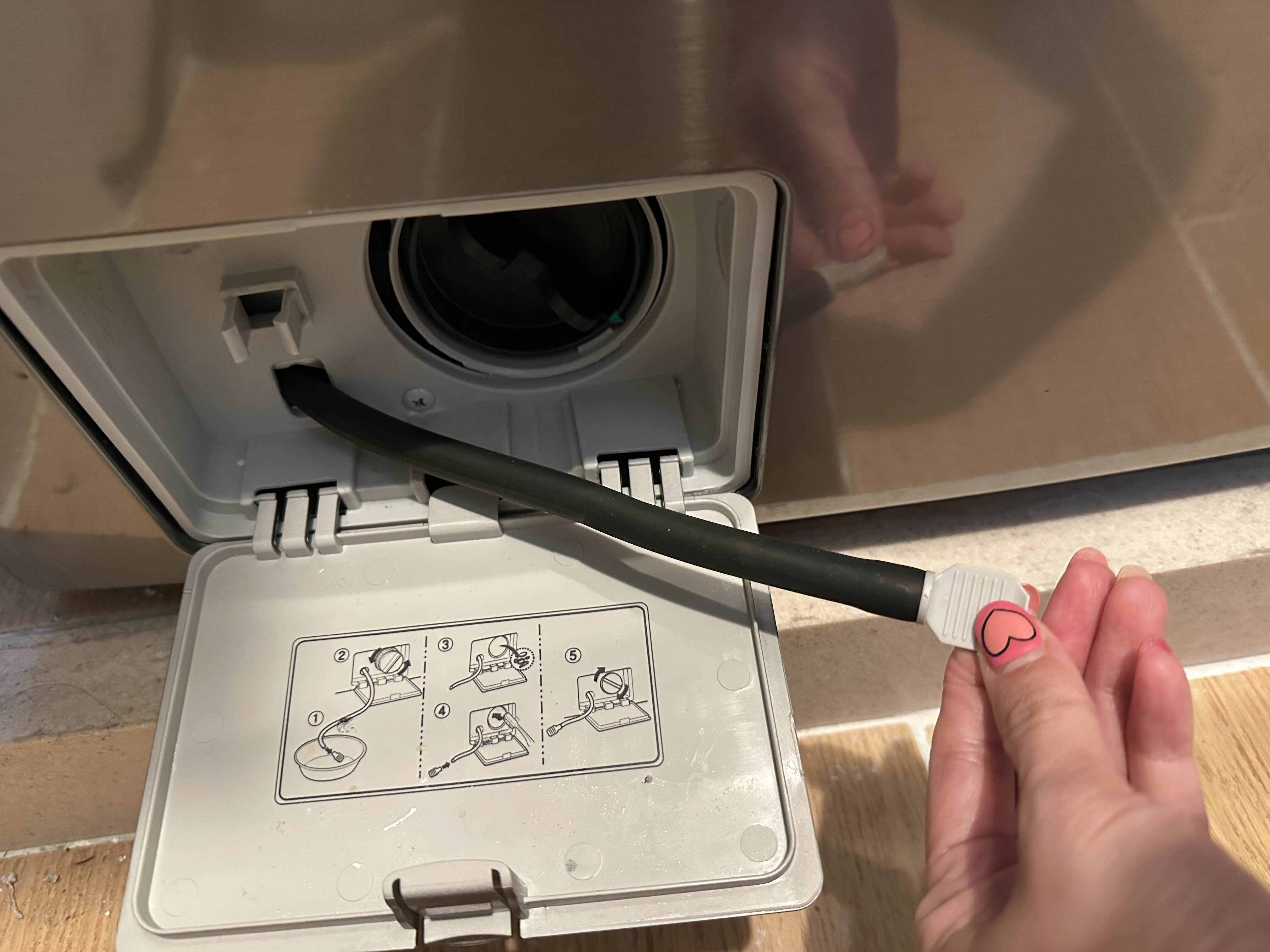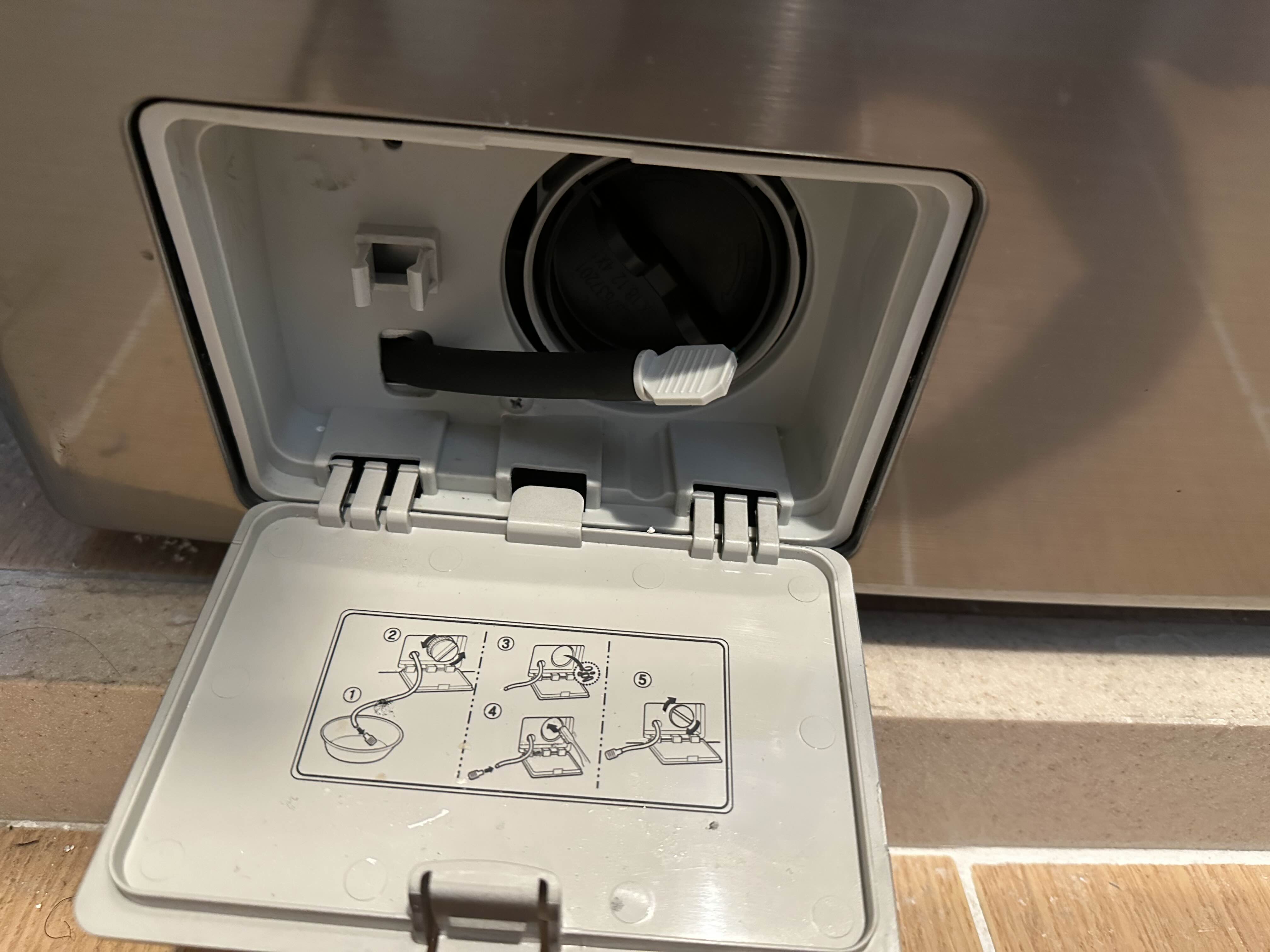 세탁기 왼쪽 하단의 작은 문을 열면 세탁기에 남아있는 물을 배수할 수 있습니다.