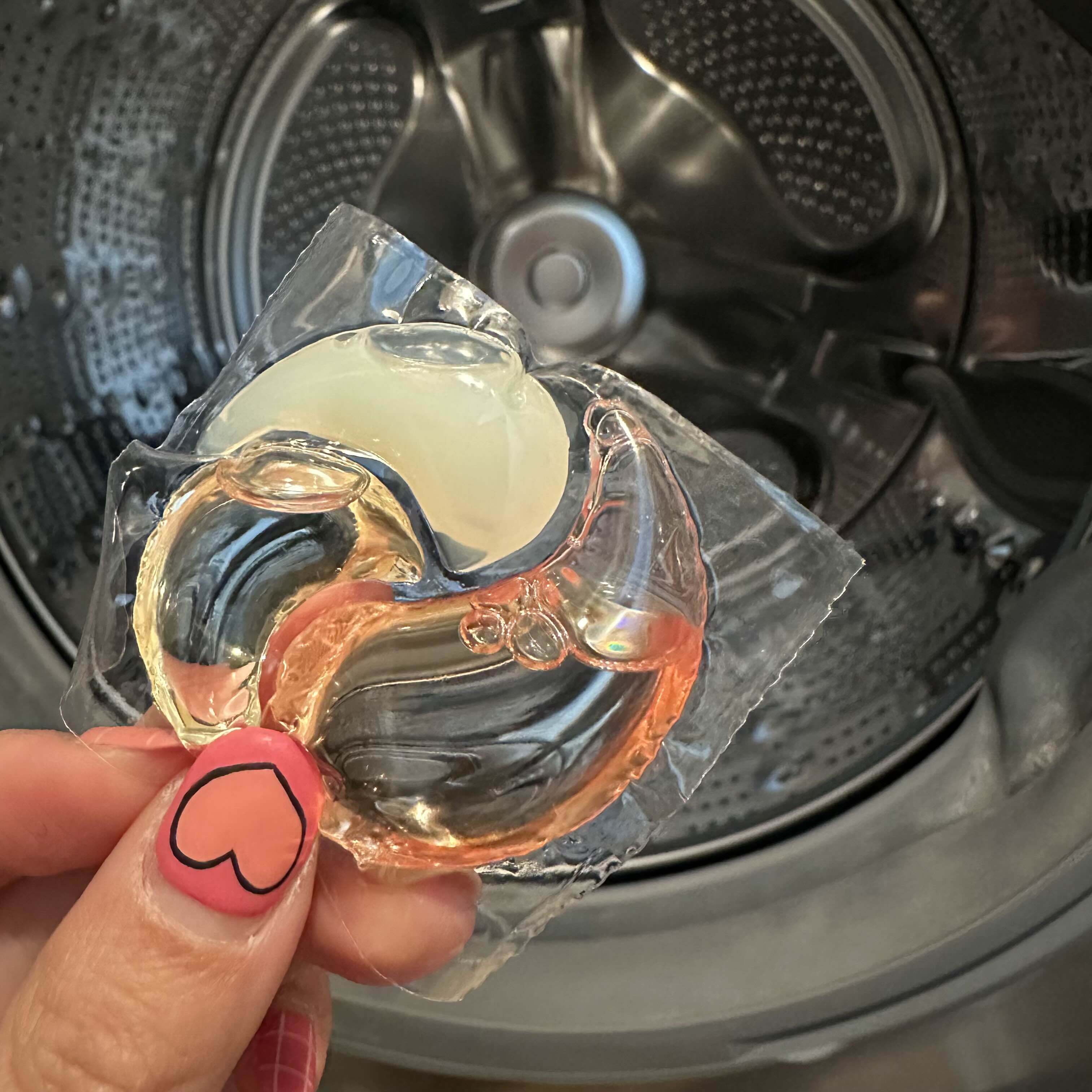 캡슐을 세탁기에 똑바로 넣습니다. 나는 그것을 주었다 캡슐은 비닐처럼 생겼지만 그대로 물에 녹는 제품으로 보입니다.