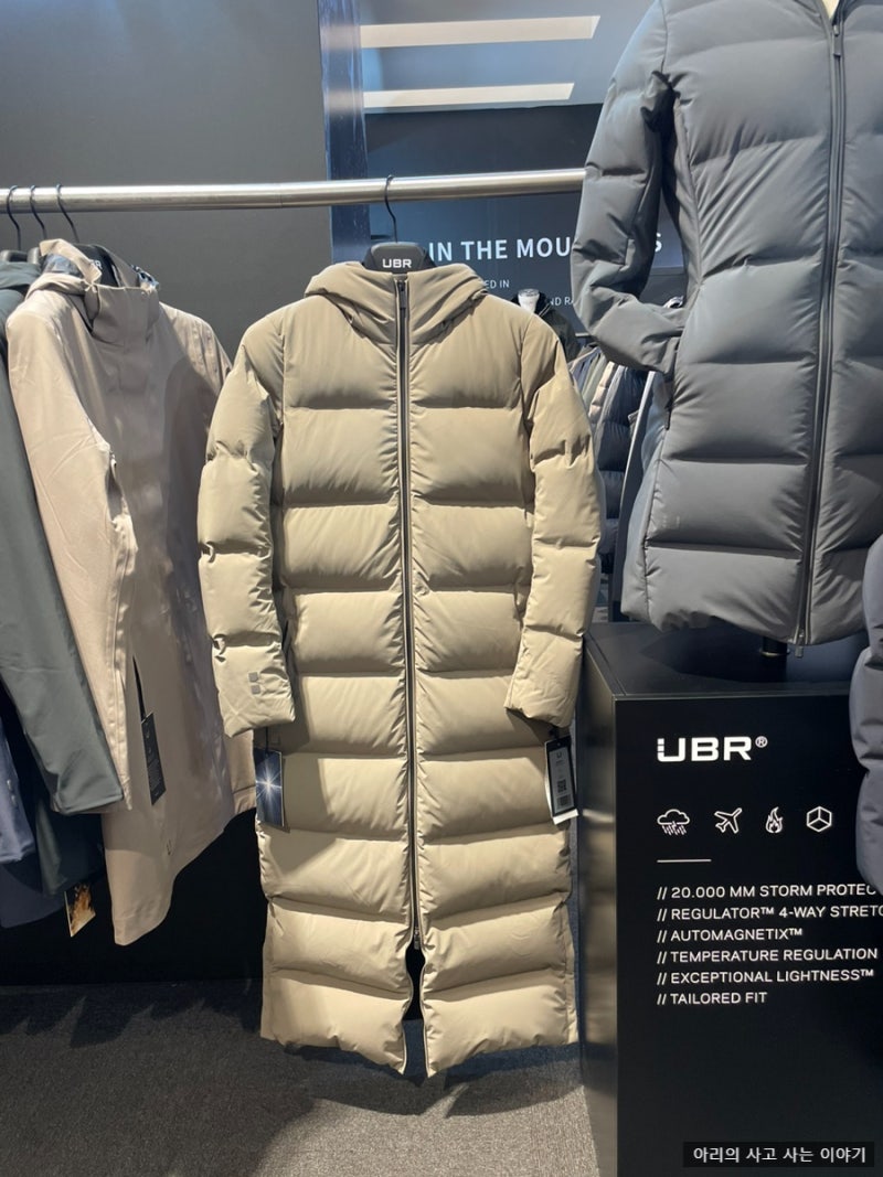 UBR 우버 패딩 입니다. ION PARKA 허벅지 중간쯤 오는 가벼운 패딩입니다. 얼핏 얇고 가벼워 보이지만 -10도부터 +10도까지 착용 가능한 제품이라 오늘같은 날씨에 딱인 아우터입니다.UBR 가벼운 패딩 리뷰입니다.